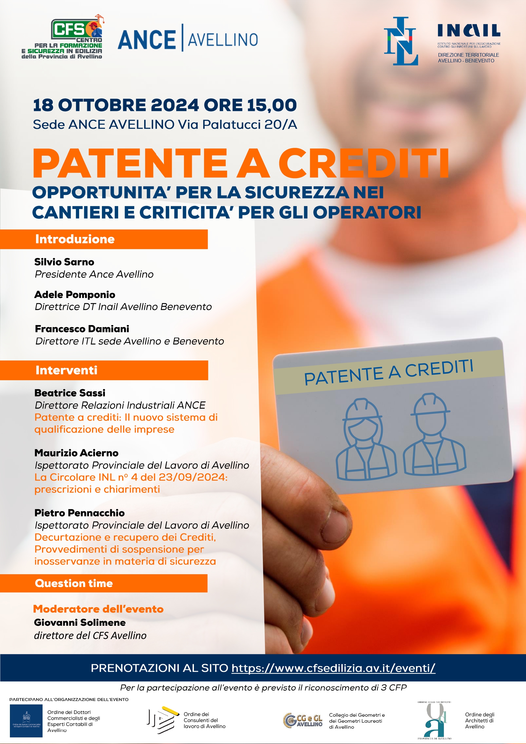 Convegno ANCE AVELLINO ” Patente a crediti – Opportunità per la sicurezza nei cantieri e criticità per gli operatori ” 18 ottobre ore 15